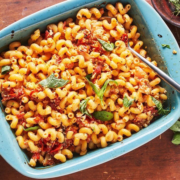 - Serve To skillet with tomatoes and feta, add cooked pasta, reserved pasta water, and lemon zest (if using) and stir until combined. Garnish with basil.