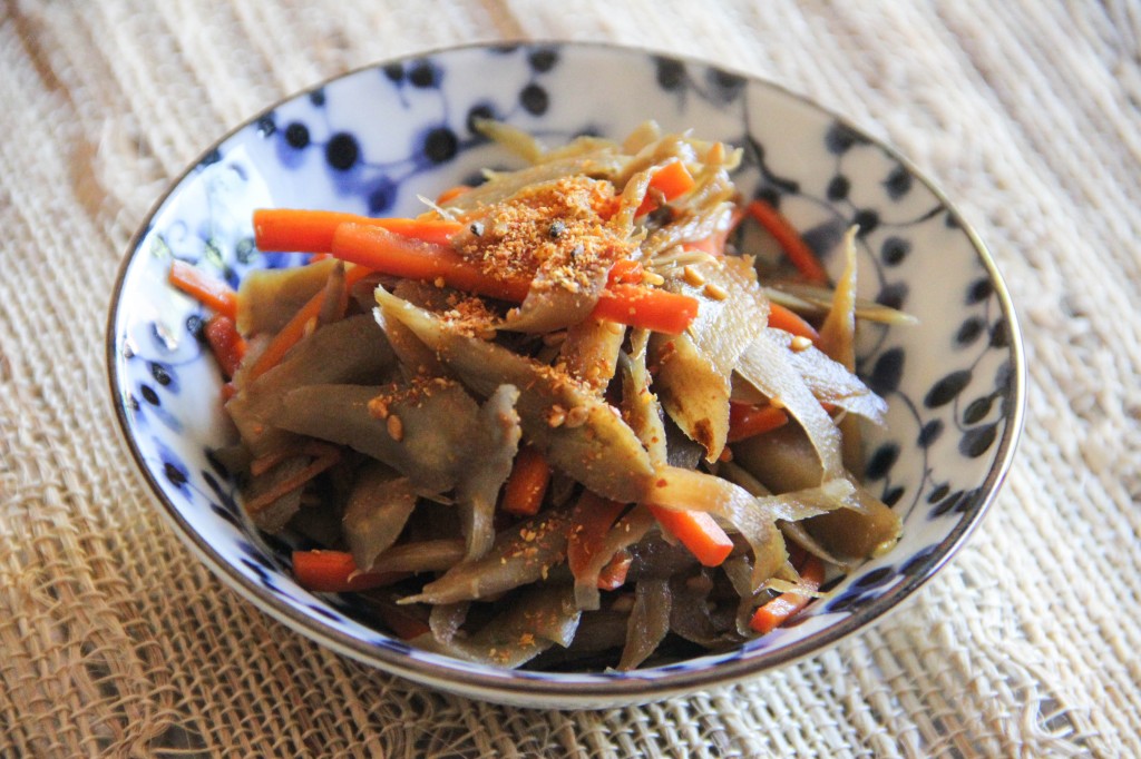 - 1 Gobo (burdock root, Sasagaki cut)
