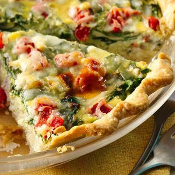 - Spoon the vegetable mixture into the prepared piecrust, pour in the egg mixture, and crumble the goat cheese on top. Bake for 25 to 30 minutes until set. Remove from the oven and let cool for 30 minutes before serving.