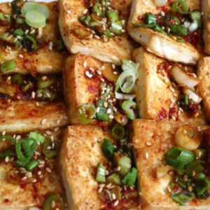 Pan fried tofu with spicy sauce