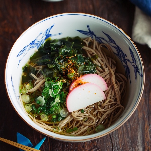 - Pour hot soup broth over soba noodles, top with kamaboko, wakame seaweed, and green onions. Enjoy while it’s hot.